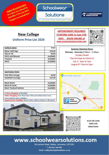 *Please note only the blazer and PE top need to be bought from the above. All other items can be purchased from a retailer of your choice, provided they match our uniform requirements.